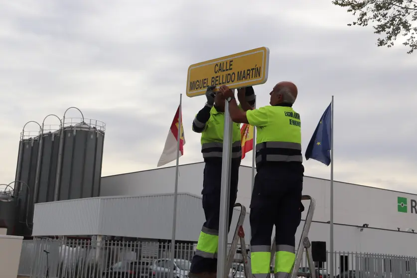 En la fresca mañana de San Miguel, y en presencia de representantes de las distintas asociaciones empresariales de la localidad, se cumplió el acuerdo plenario aprobado por los Grupos del PSOE y de UCIN el pasado mes de abril por el que se da el nombre del empresario Miguel Bellido Martín a esta primera avenida del Sector 5.