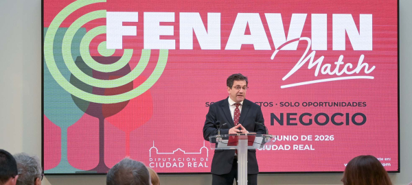 El presidente de la Diputación de Ciudad Real y de FENAVIN, Miguel Ángel Valverde, ha presentado hoy en el Palacio Provincial FENAVIN Match 2026, un encuentro profesional que nace con el objetivo de reforzar la posición estratégica del vino de la provincia y de toda España en el mercado internacional mientras se potencia a la capital como un espacio permanente de negocio, análisis y proyección del sector vitivinícola.