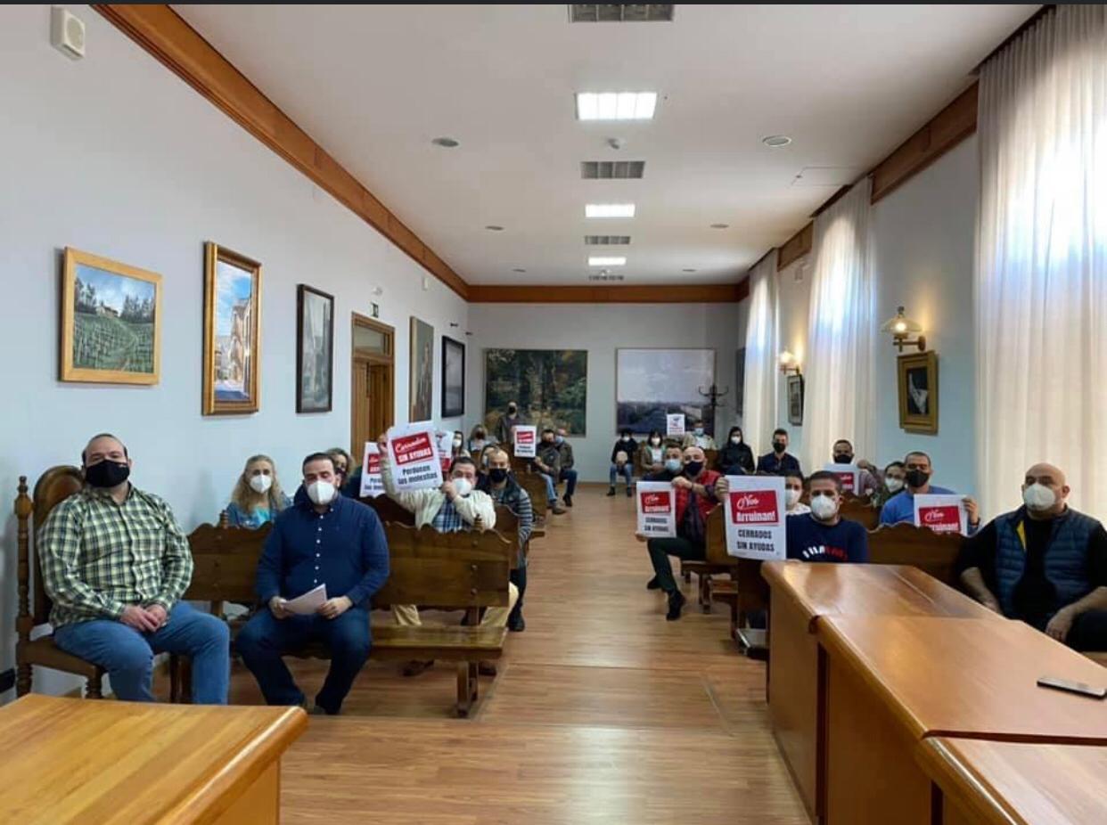 Los hosteleros se han manifestado esta mañana frente al Ayuntamento. Moral, según su alcalde, tenía el pasado viernes 13 positivos en coronavirus. No existen, según defiende, razones que justifiquen el nivel 3 en esta población.