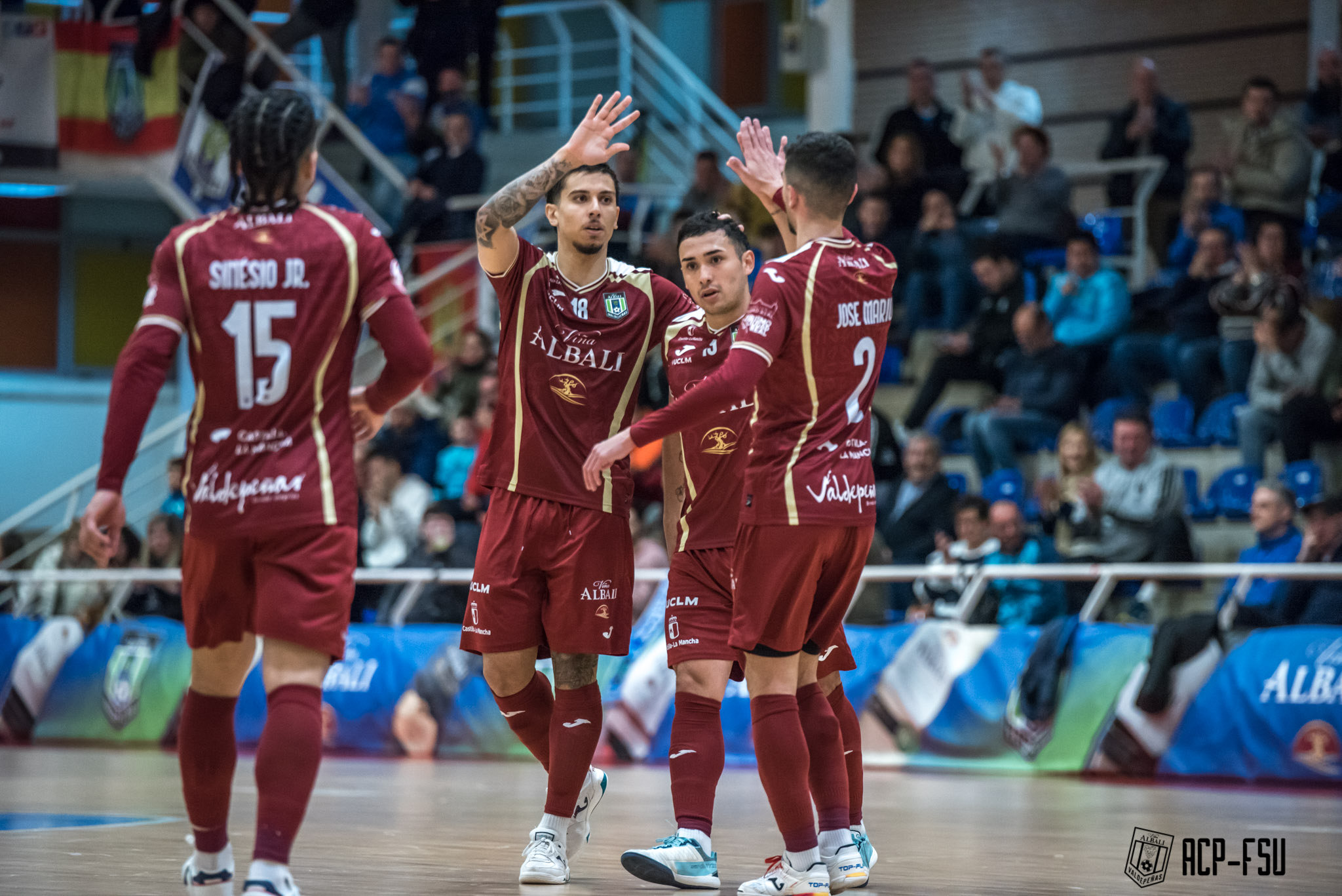 Partido de máximo intensidad y exigencia que comenzó con el primer aviso de los vinateros a los 3 minutos de partido. Un derechazo de Mateus Torres hizo temblar la portería de Roncaglio, pero el disparo pegó en la madera. Apenas un minuto después, Boyis, al igual que lo hizo ante Manzanares, sacó su faceta goleadora y con un derechazo cruzado batió por primera vez la portería del Riga para adelantar al Viña Albali Valdepeñas. Tan solo dos jugadas después, llegó el 2-0, obra de Nicolás Marrón que aprovechó un error en la salida de balón visitante para estrenarse con la camiseta del Viña Albali. No dio tiempo a celebrar el tanto azulón cuando un error de Pato le dio la oportunidad a Airoso de recortar distancias y marcar el 2-1 en el minuto 5 de partido. Ya superado el ecuador de la primera mitad, Nicolás Marrón volvía a ser el más listo de la clase y aprovechó un balón en la línea de gol para anotar su doblete particular y subir el 3-1 al luminoso. Resultado con el que se llegó al descanso.