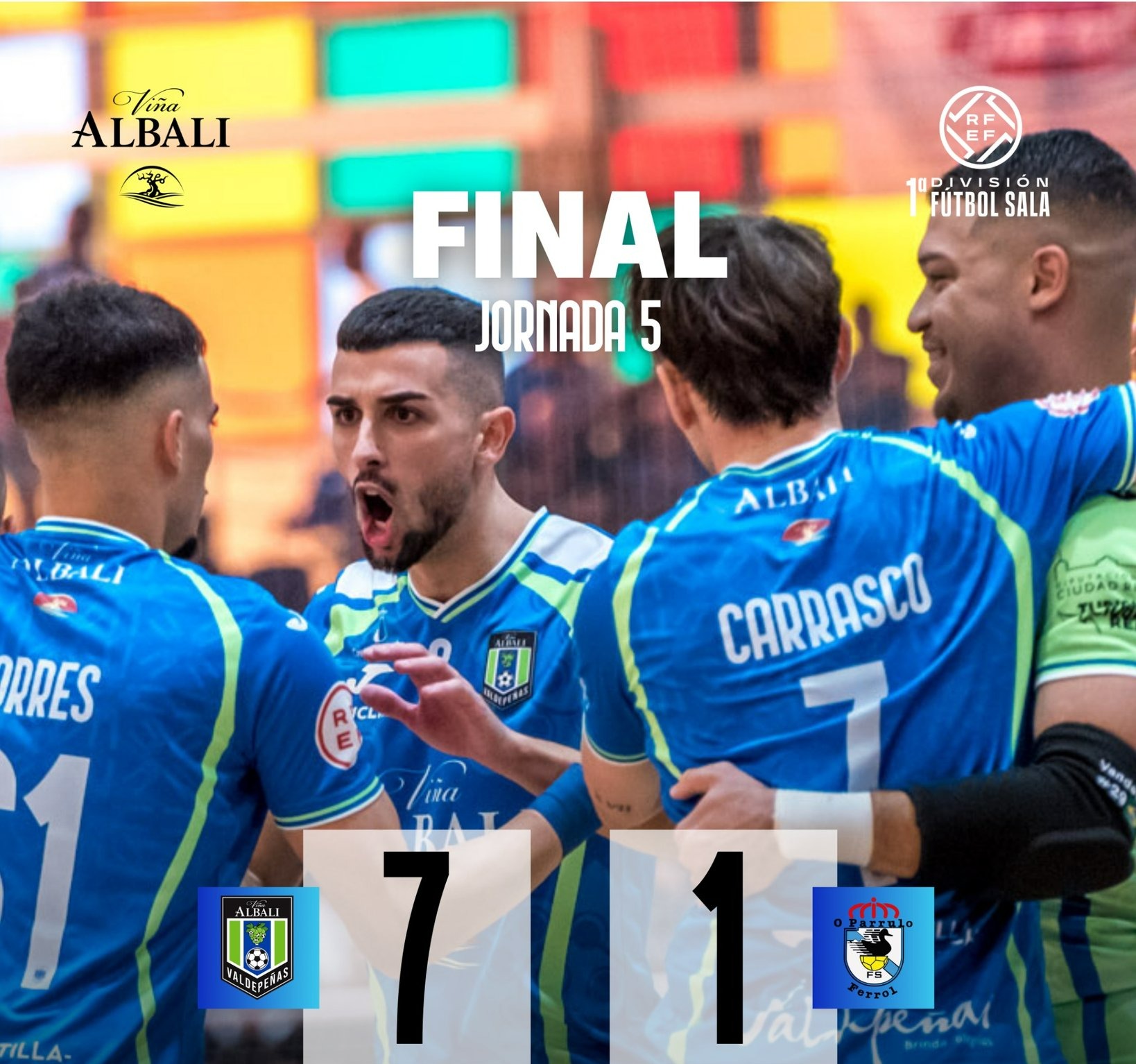 El Viña Albali Valdepeñas ha conseguido su tercera victoria de la temporada en la jornada 5 de la LNFS tras vencer en casa 7-1 a O Parrulo Ferrol.