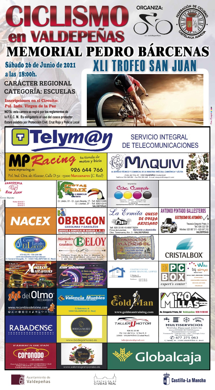 Valdepeñas se reencontrará con el ciclismo de escuelas dos años después para acoger una nueva edición del Trofeo San Juan-Memorial Pedro Bárcenas López, tercera cita del Trofeo Federación para la cantera del ciclismo regional, que este año cumple 41 años. Será el próximo sábado 26 de junio, a partir de las 18:00 horas, bajo la organización del Club Ciclista Valdepeñas.