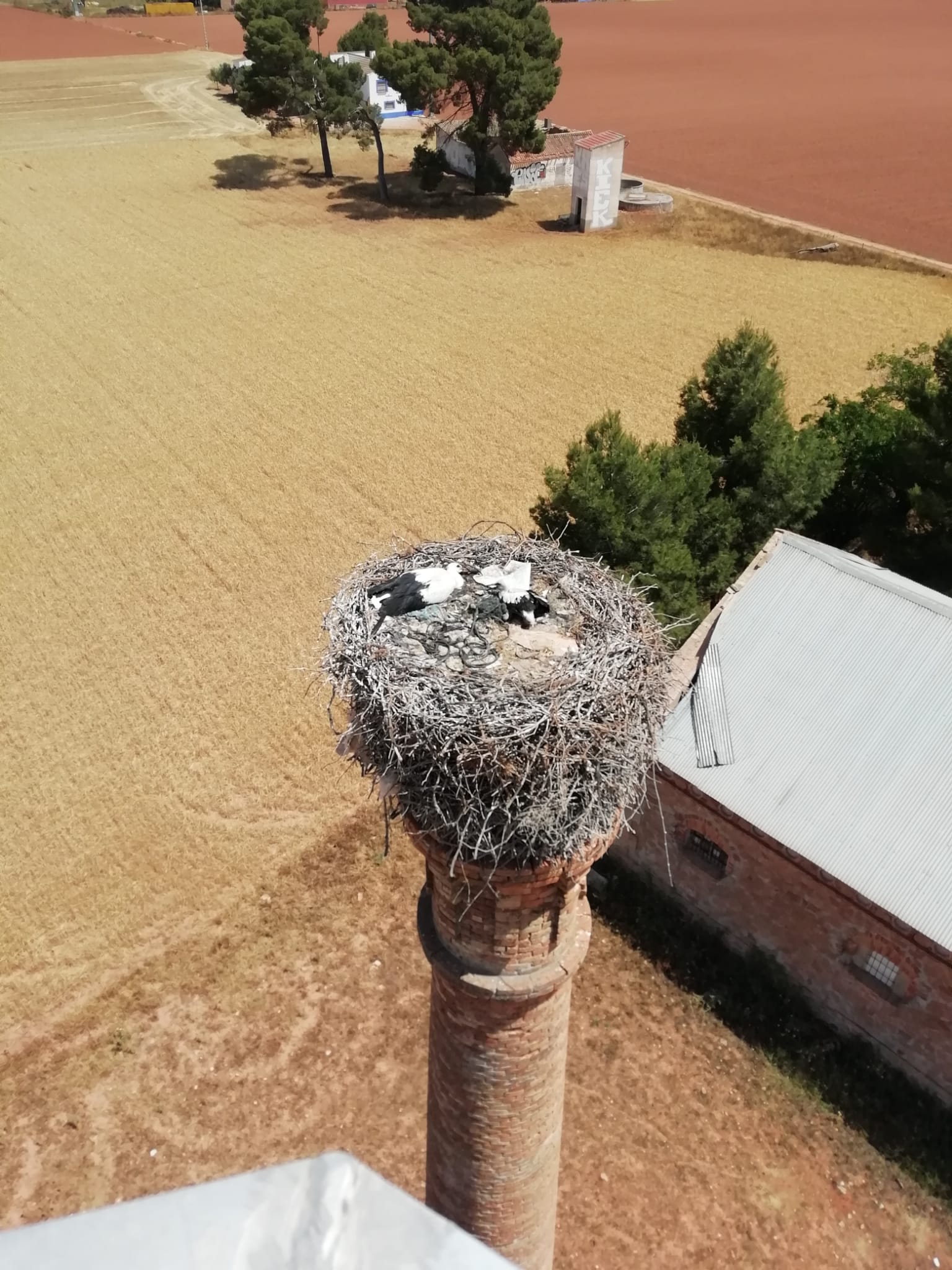 Al lugar, donde hay bastantes nidos en las torretas y las chimeneas, se desplegó un dispositivo compuesto por un vehículo contra incendios y un brazo articulado por el que ascendió un bombero y personal de El Chaparrillo para salvar al polluelo, que fue puesto en libertad tras un estudio in situ mediante el que se comprobó que estaba en perfecto estado.