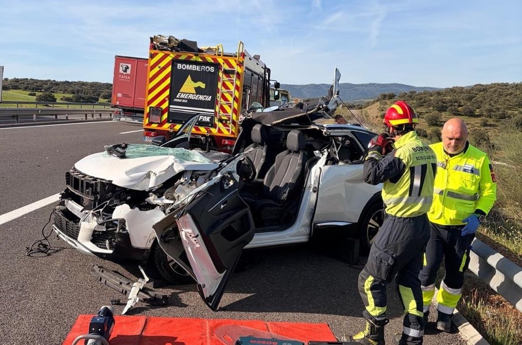 Efectivos del parque de bomberos de Valdepeñas han intervenido hoy en un accidente de tráfico por alcance entre un turismo y un camión en la autovía A4, kilómetro, en el término de Almuradiel, informa Emergencia Ciudad Real en sus redes sociales.
