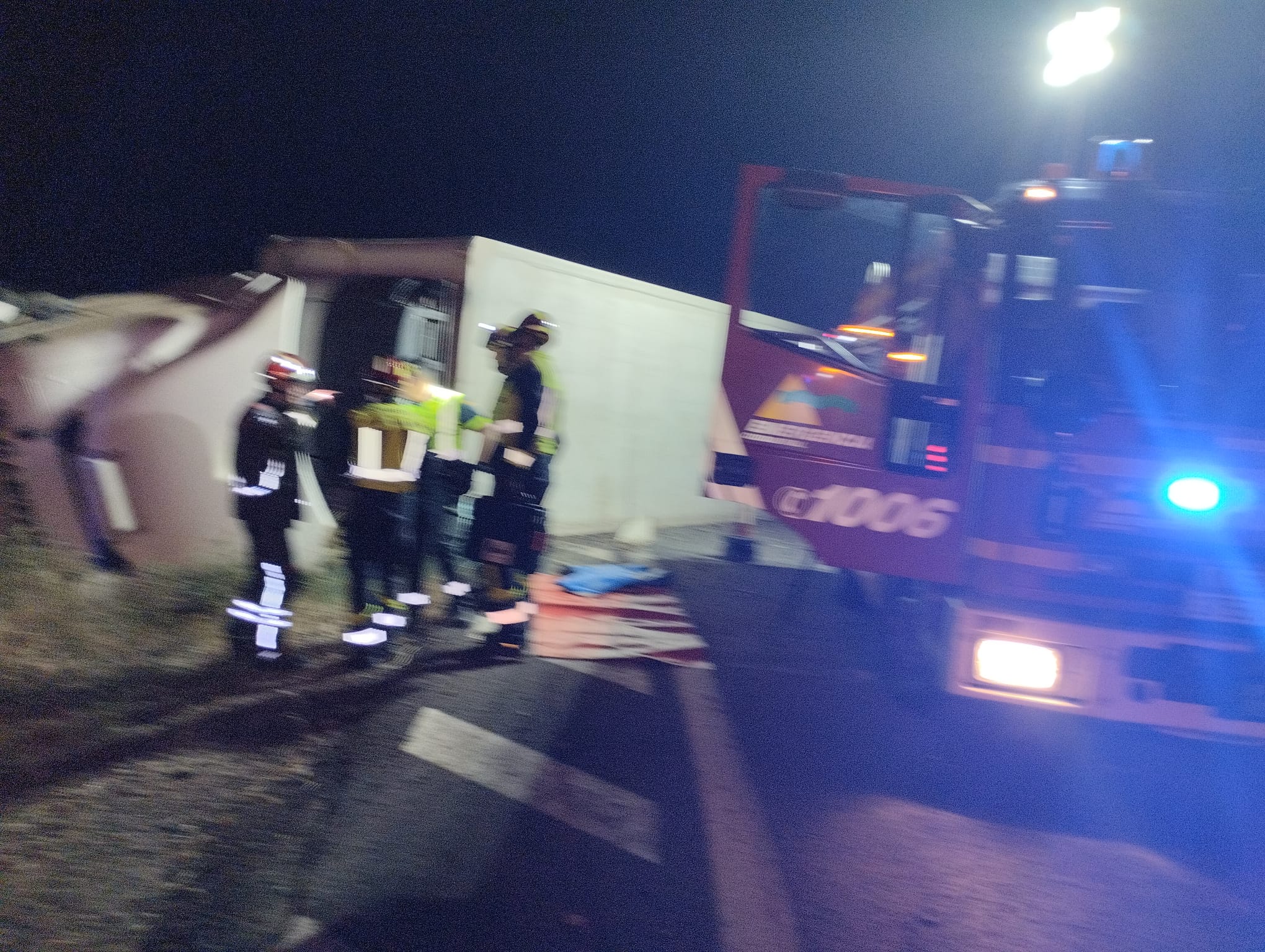 Un herido en el vuelco de un camión, en la vía de servicio de la A4