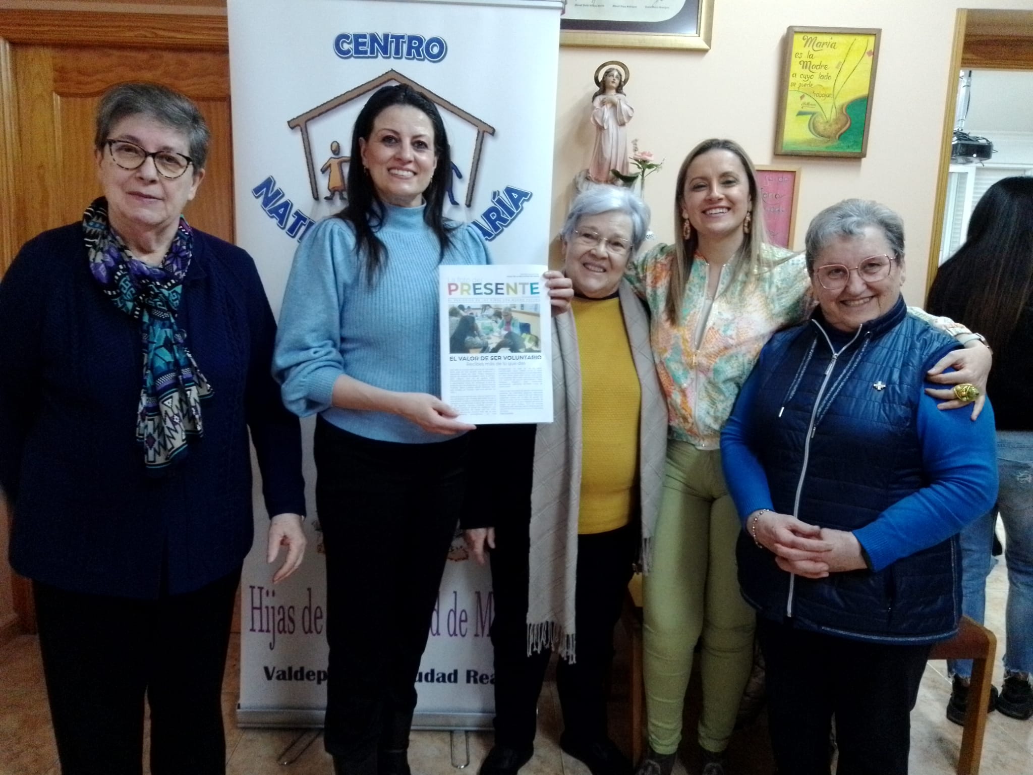 Las tres responsables del Centro Educativo Hijas de la Natividad de María, de Valdepeñas, han presentado esta tarde el primer número del periódico La Foto del PRESENTE, subtitulado El periódico de los niños con mucho futuro.