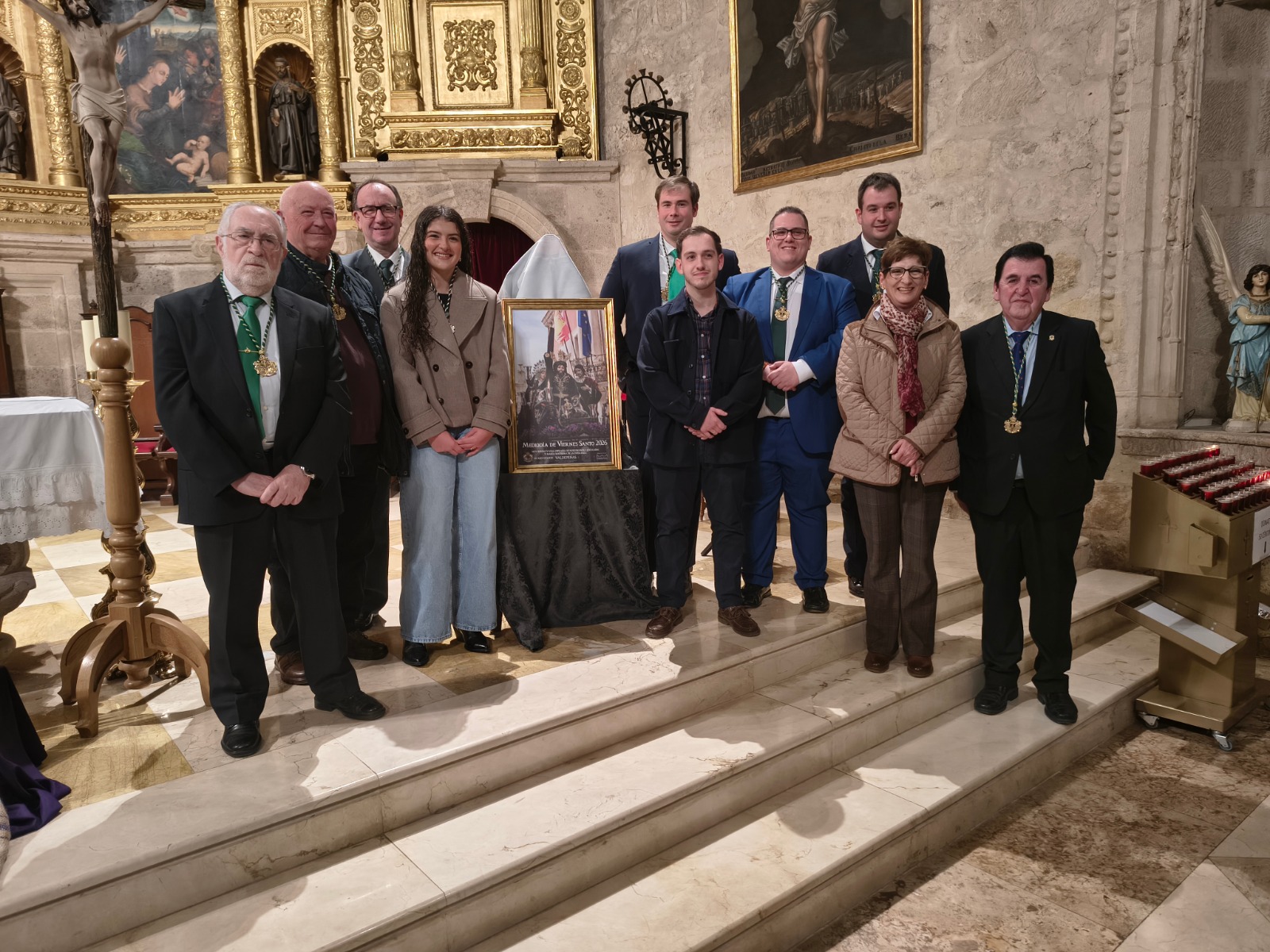 Se encargó de la descripción, el secretario de la agrupación de hermandades, y a su vez, responsable de relaciones institucionales de la cofradía del Caído y la Esperanza, el periodista valdepeñero, Ángel López Sánchez, ante la presencia del párroco y consiliario, Enrique Galán Ruedas, el vicario parroquial, Ángel Francisco Rivas, y la primer teniente de alcalde, Vanessa Irla Uriarte, a la que acompañaban las concejales Paqui Madrid Castellanos e Inmaculada Pacheco Santillana.