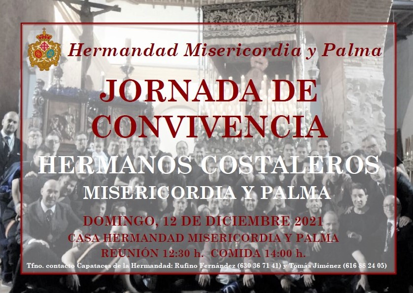 El próximo domingo 12 de diciembre la Vocalía de Costaleros de la Hermandad de Misericordia y Palma ha organizado una Jornada de Convivencia para la cuadrilla de hermanos costaleros en la Casa Hermandad.