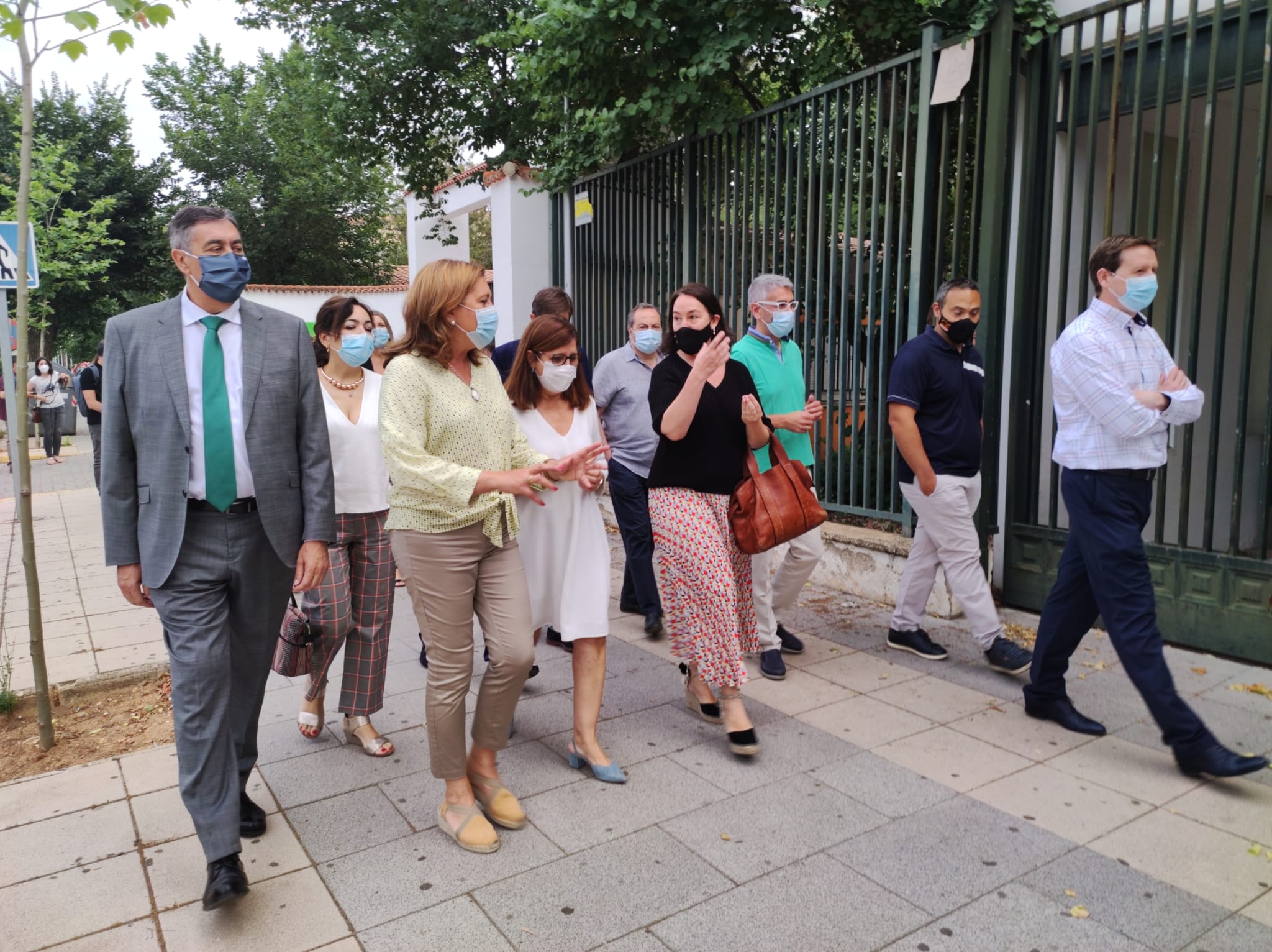 El alcalde de Valdepeñas, Jesús Martín, ha acompañado hoy a la consejera de Educación, Cultura y Deportes, Rosa Ana Rodríguez Pérez y a la directora gerente del Servicio de Salud de Castilla-La Mancha (Sescam), Regina Leal, en la inauguración de la escultura ‘El balcón de la esperanza’, una iniciativa de los alumnos y alumnas del IES Gregorio Prieto en homenaje a los colectivos que han hecho frente a la pandemia y que integra en su interior una estación meteorológica.