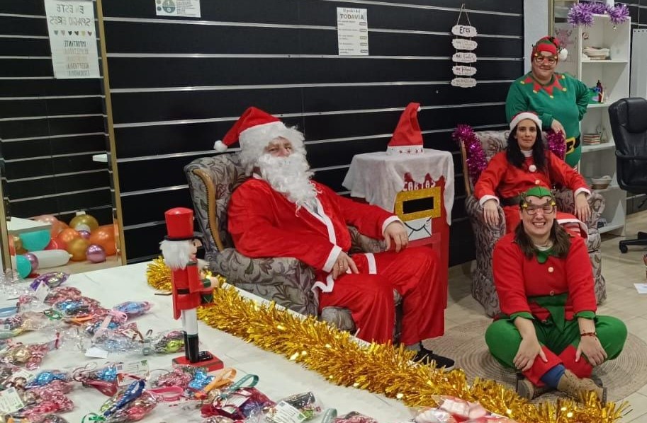 La asociación de personas con necesidades especiales, con sede en Valdepeñas, recibió la visita de Papá Noel, Mamá Noel y algunos elfos