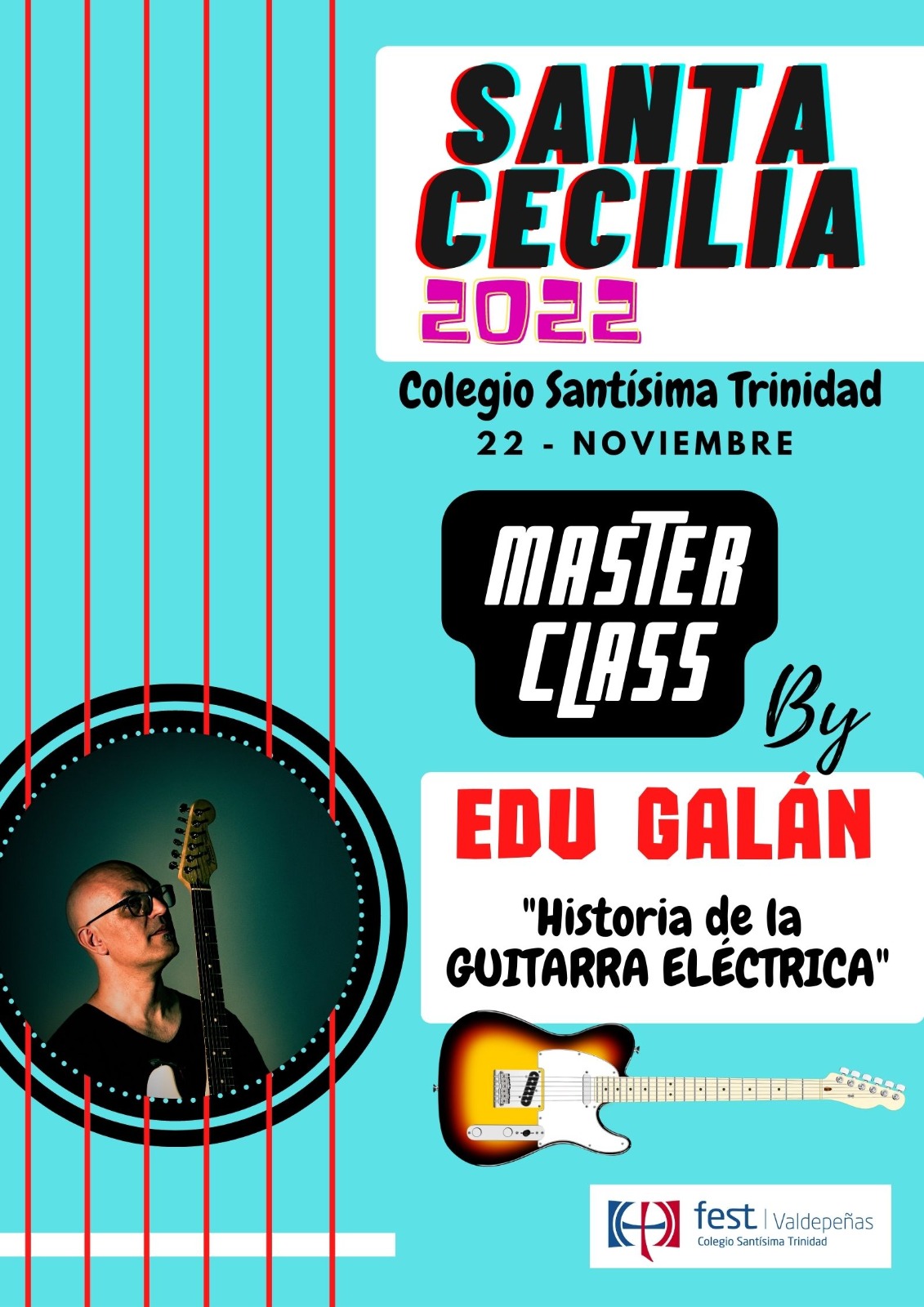 El próximo martes 22, el colegio Stma. Trinidad acogerá una Master class de guitarra eléctrica en la que se trabajará la historia de este instrumento. El ponente será Eduardo Galán, músico valdepeñero, que deleitará con uno de los instrumentos más atractivos para las alumnas y alumnos. Los grupos que participarán serán 5º y 6º de primaria en un primer turno y 1º y 2º de ESO en el segundo turno.