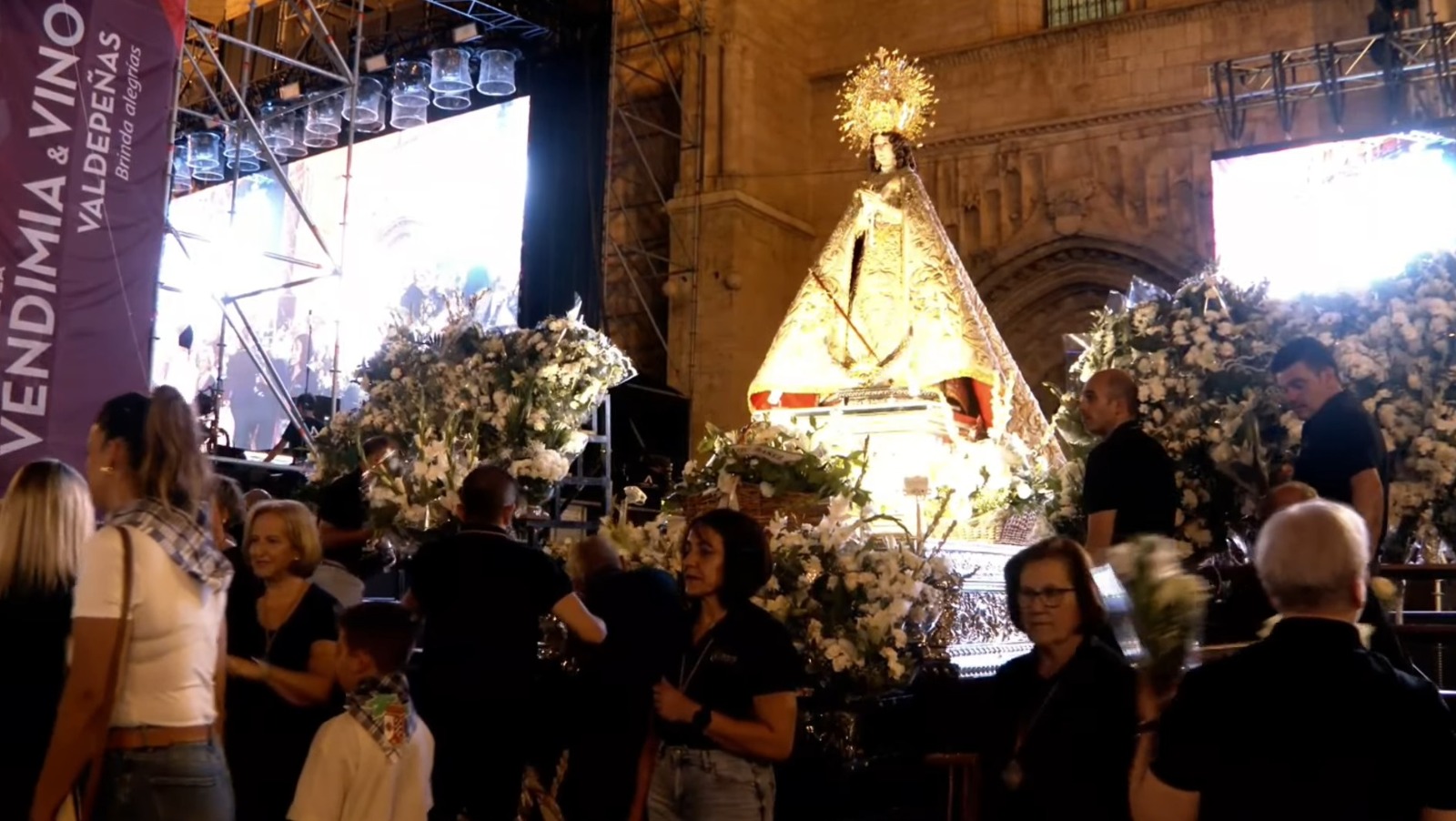 La culminación, un año más, de esta ofrenda, han sido las palabras del sacerdote párroco de La Asunción, Enrique Galán y del alcalde de Valdepeñas, Jesús Martín, dirigidas a la imagen de la Virgen, pidiendo por el buen futuro de la ciudad y la paz en todo el mundo.