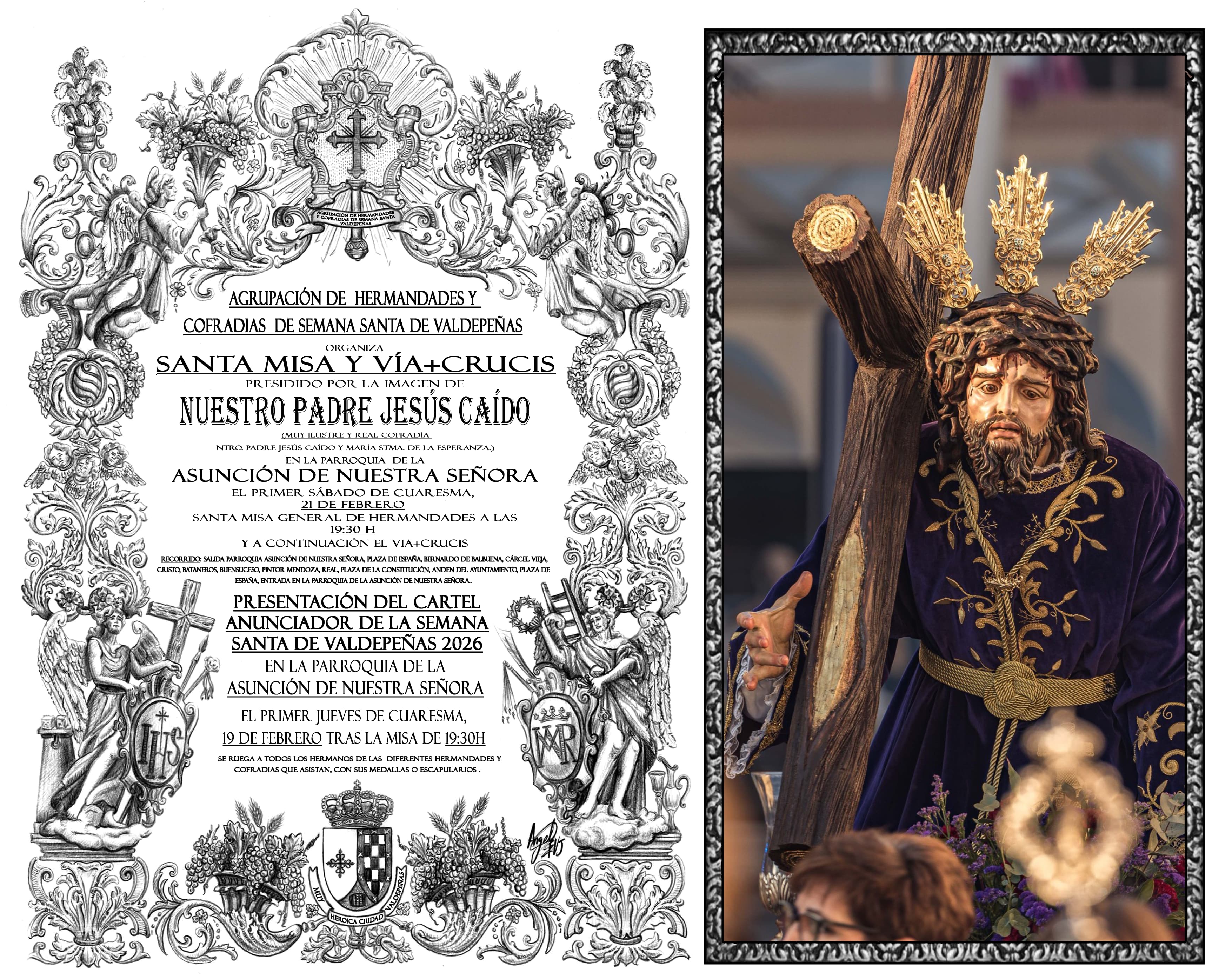 Concluida la misma, se celebrará el Viacrucis General de Cuaresma, organizado igualmente por la Agrupación de Hermandades y Cofradías de Semana Santa.