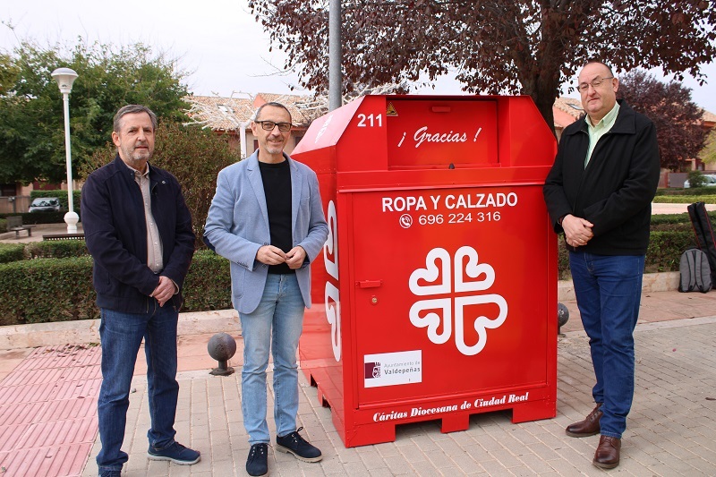 Valdepeñas distribuye nuevos contenedores de ropa y calzado gestionados por Cáritas para promover la sostenibilidad y la inserción social
