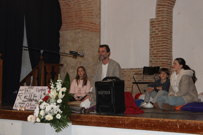 Juan Antonio Gómez-Caminero ha ofrecido a los asistentes un concierto meditativo, acompañado de sus sobrinos sobre el escenario, donde lo importante no era el libro ni su autor, sino cada persona del público, que han tenido la oportunidad de entrar en contacto consigo mismos a modo de contemplación.