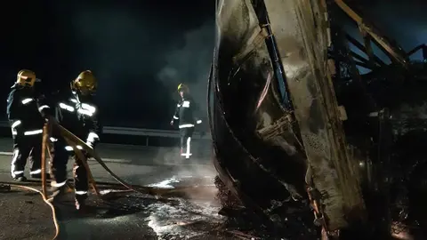 Sale ardiendo un camión cisterna en la Autovía A4 a la altura de Villarta de San Juan