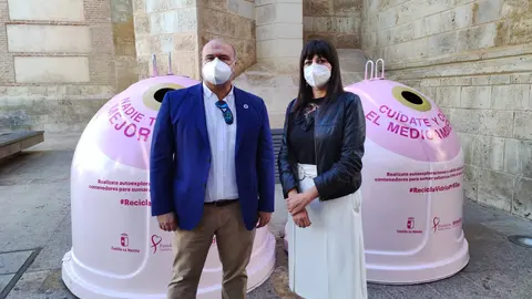 Valdepeñas Valdepeñas instala contenedores rosas con forma de pecho por el cáncer de mama 25/10/21 Se han puesto en la Plaza Constitución a beneficio de la investigación a través de la Fundación Sandra Ibarra