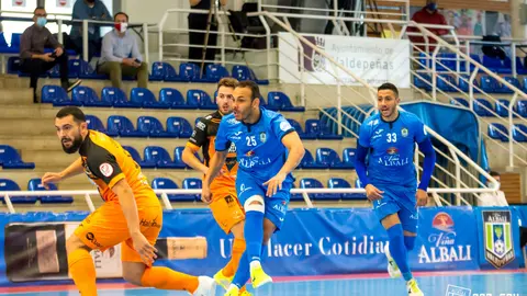 Deportes Fútbol sala El Viña Albali Valdepeñas reina en un festival de goles (7-2) José Ángel Fdez. López 18/3/21 Chino y Cainan en dos ocasiones, y Catela, Nano y Sergio González en una, marcaron los goles vinateros