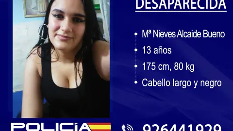 Campo de Montiel/Calatrava Localizada María Nieves Alcaide, la joven de 13 años que desapareció en Puertollano 9/7/21 La Policía Nacional ha emitido un comunicado a través de redes sociales