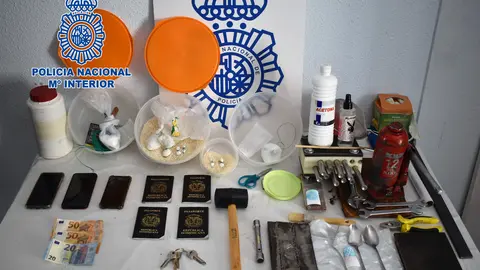 Se incautaron 113 gramos de cocaína, 32.5 gramos de hachís, 25 pastillas de esteroides, teléfonos móviles, tarjetas de memoria, tarjetas telefónicas, varios USB, recortes de plástico para envolver…
